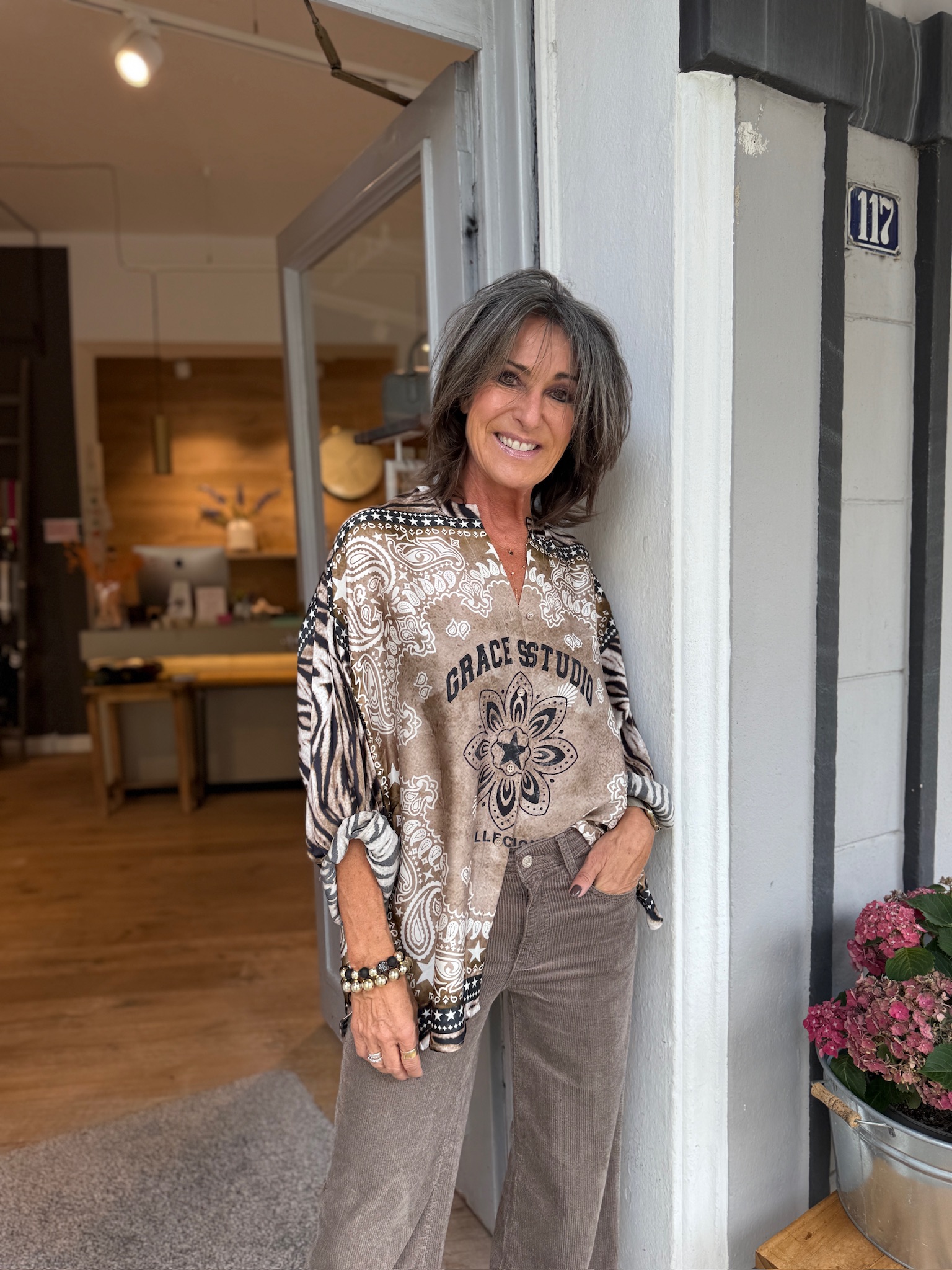 Damenbluse aus 97%Viskose/3%EA, gewebt