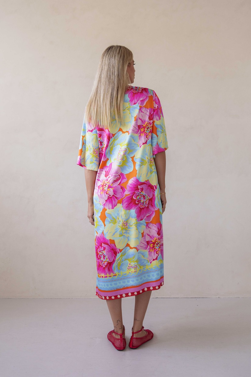 Fröhlicher Allover-Print mit bunten Blüten. Lässiges und zugleich edles Schlupfkleid