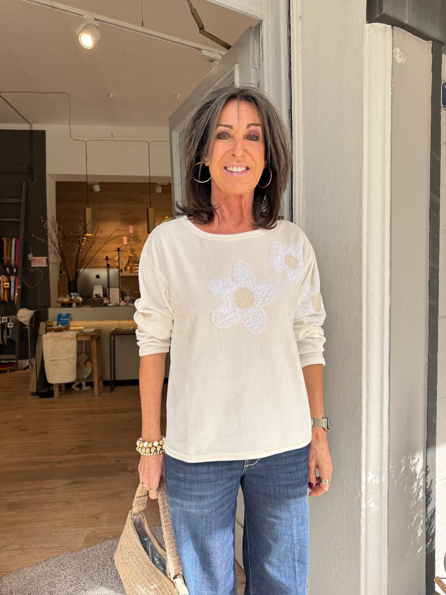 Sweatshirt | Grace | Nickisweat Paillettenblumen | offwhite | 437/2200